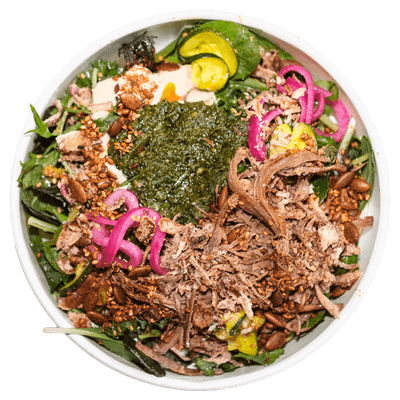 Nice Spice Chilli, Kale, Pickles, Shallots, Togarashi, Furikake, Sesame & Miso Dressing. (ng,df)